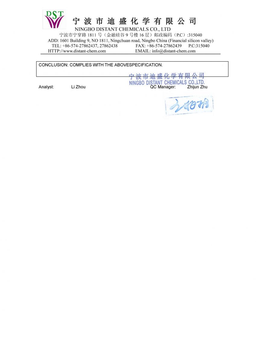 Copyright(C)2025, Ningbo Distant Chemicals (DST) Co., Ltd. (Ningbo Free Trade Zone Yuanfang Biochemicals Co., Ltd.)