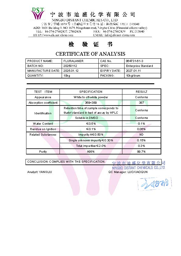 Copyright(C)2025, Ningbo Distant Chemicals (DST) Co., Ltd. (Ningbo Free Trade Zone Yuanfang Biochemicals Co., Ltd.)